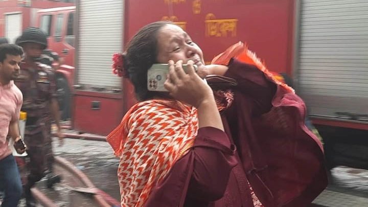 এ সময় মার্কেটের সামনের রাস্তায় এক মা অঝোরে কাঁদতে কাঁদতে বলছেন, আমার ছেলে সাব্বির মার্কেটের দোতলায় আটকা পড়ছে। তার সঙ্গে ফোনে কথা হচ্ছে, কিন্তু সে বের হতে পারছে না।