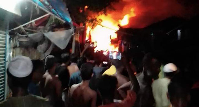 মঠবাড়িয়ার তুষখালী বাজারে ভয়াবহ আগুনে ১০টি দোকান পুড়ে ছাই