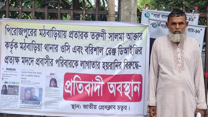 নিজস্ব প্রতিবেদক, বরিশাল: পিরোজপুরের মঠবাড়িয়ায় পুত্রবধুর মিথ্যা মামলা ও হয়রানির বিরুদ্ধে প্রতিবাদী অবস্থান কর্মসূচি পালন ও সংবাদ সম্মেলন করেছেন শ্বশুর আলকাজ উদ্দিন হাওলাদার।