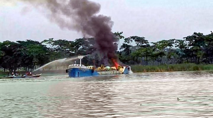 সুগন্ধা নদীতে তেলবাহী জাহাজে বিস্ফোরণ, দগ্ধ ৪