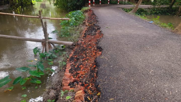 ৩ কোটি ৭৮ লক্ষ টাকার সড়ক ও ব্রীজের এপোর্চ সড়ক নির্মানে ফাঁকি, সড়ক ভেঙে খালে, উঠে যাচ্ছে পাথর