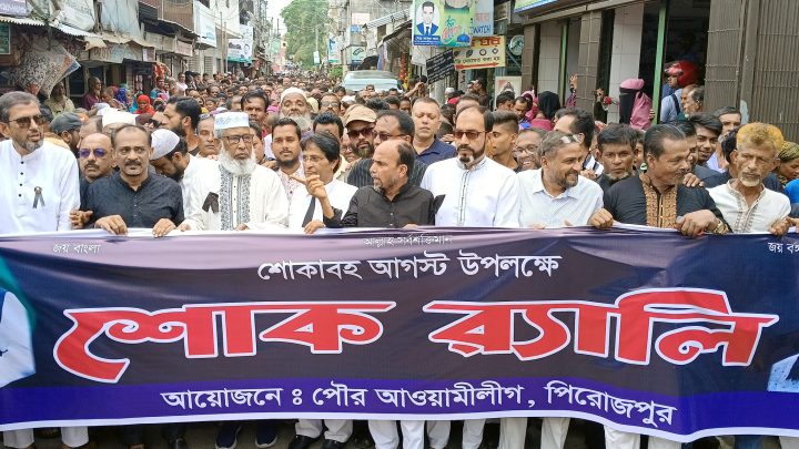 পিরোজপুরে শোকাবহ আগস্টের প্রথম দিনে শোক র্যালী
