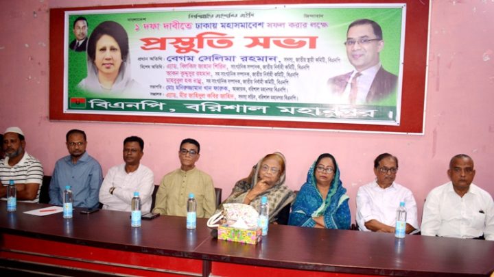 রোববার বিকালে শহীদ আঃ রব সেরনিয়াবাত বরিশাল প্রেসক্লাবে মহানগর বিএনপি আয়োজনে অনুষ্ঠিত হয়। বরিশাল মহানগর বিএনপি আহবায়ক মোঃ মনিরুজ্জামান খান ফারুকের সভাপতিত্বে ও মহানগর বিএনপি সদস্য সাইফুল আহসান আজিমের সঞ্চলনায় প্রস্তুতি সভায় প্রধান অতিথি হিসাবে উপস্থিত থেকে জাতীয় স্থায়ী কমিটির সদস্য বেগম সেলিমা রহমান সমাবেশে অংশ গ্রহন বিষয়ে দিক নির্দশনা বক্তব্য দেন।