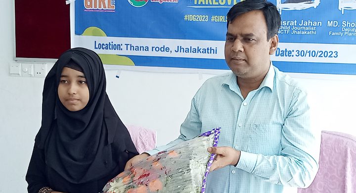 নিজস্ব প্রতিবেদক, বরিশাল:: ঝালকাঠি জেলা পরিবার পরিকল্পনা কর্মকর্তার প্রতীকী দায়িত্ব পালন করেছেন সপ্তম শ্রেণির ছাত্রী নুসরাত জাহান। নুসরাত জাহান ন্যাশনাল চিলড্রেনস টাস্কফোর্স (এনসিটিএফ) ঝালকাঠি জেলা শাখার শিশু সাংবাদিক ও সরকারি হরচন্দ্র বালিকা উচ্চ বিদ্যালয়ের সপ্তম শ্রেণির ছাত্রী।