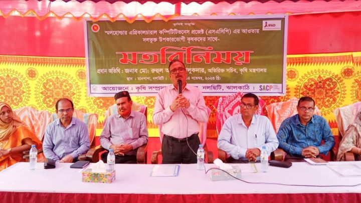 শনিবার (৪ নভেম্বর) বিকেলে ঝালকাঠি নলছিটি উপজেলার কুশঙ্গল ইউনিয়নে স্মলহোল্ডার এগ্রিকালচারাল কম্পিটিটিভনেস প্রজেক্ট (এসএসিপি) আওতায় উপকারভোগী কৃষকদের সাথে মত বিনিময় সভায় প্রধান অতিথির বক্তব্যে তিনি এসব কথা বলেন। তিনি আরও বলেন, আগের চেয়ে বর্তমানে সবকিছুর উৎপাদন বেড়েছে। কৃষি ক্ষেত্রে অনেকদূর এগেয়ি গেছে। জনসংখ্যা বাড়ছে তাই বসে থাকলে হবে না আরও উৎপাদন বাড়াতে হবে। তাহলে একদিকে খাদ্য নিরাপত্তা নিশ্চিত হবে অন্যদিকে আয় হবে।