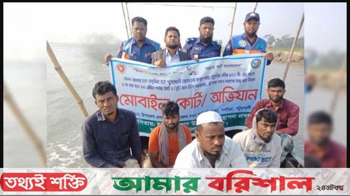 উপজেলা নির্বাহী কর্মকর্তা ও এক্সিকিউটিভ ম্যাজিস্ট্রেট নাফিসা নাজ নীরা এ অভিযান চালান। তিনি আজকের পত্রিকাকে এ তথ্য নিশ্চিত করেছেন। দণ্ডপ্রাপ্তরা হলেন—পটুয়াখালী জেলার বাউফল উপজেলার ধানদি গ্রামের সেকান্দার মৃধার ছেলে মো. ফারুখ মৃধা (৪০), স্বপন মৃধা (৩৮), নিমদি গ্রামের আবুল রাড়ির ছেলে মো. স্বপন রাড়ি (২৫) দশমিনা উপজেলার বাঁশবাড়িয়া ইউনিয়নের ঢনঢনিয়া গ্রামের মোজাফফর চৌকিদারের ছেলে ফিরোজ চৌকিদার (২৫) ও সহিদ হোসেন মোল্লার ছেলে মো. জলিল চৌকিদার (৩০)।
