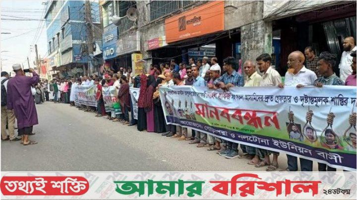 বরগুনায় সাংবাদিক হত্যার বিচারের দাবিতে মানববন্ধন