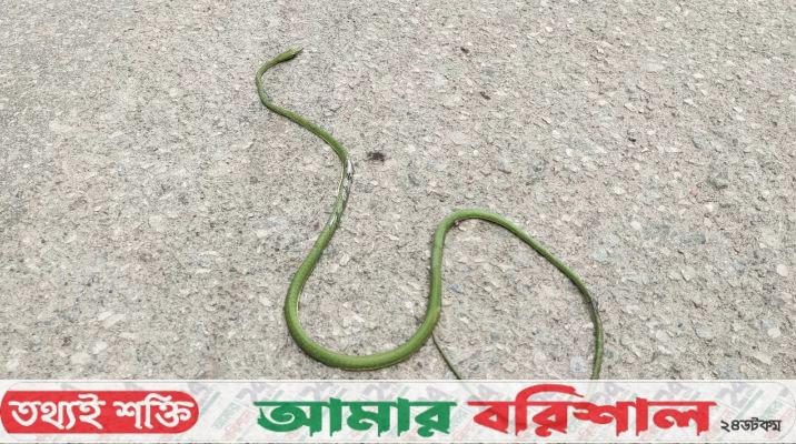 নিজস্ব প্রতিবেদক, বরিশাল: পটুয়াখালী কলাপাড়ায় এবার দেখা মিলল উড়তে পারা বিরল প্রজাতির লাউডগা সাপের। মৃদু বিষধর এ প্রজাতির সাপ এখন বিলুপ্তপ্রায়। দেখতে সবুজ বর্ণের সাপটির দৈর্ঘ্য প্রায় ৫ ফুট।