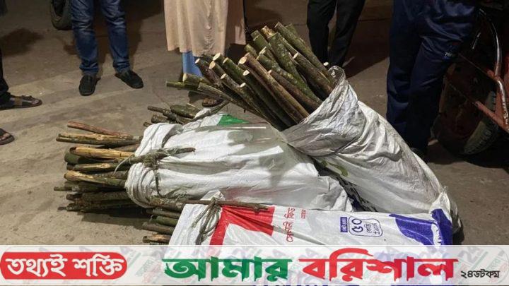 জানা যায়, উপজেলার নিদ্রার চর এলাকার সংরক্ষিত টেংরাগিরি বন থেকে ২৫০ পিস লাঠি কেটে নিয়ে এসে রাজনৈতিক অস্থিরতার প্রভাব দেখানো হবে এমন গোপন সংবাদ পায় পুলিশ। থানার সামনে চেক পোস্ট বসিয়ে বিভিন্ন গাড়ি তল্লাশি শুরু করেন।