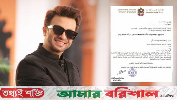 নিজস্ব প্রতিবেদক, বরিশাল: নতুন সুখবর এলো শাকিব খানের ঘরে। সংযুক্ত আরব আমিরাতের সম্মানজনক গোল্ডেন ভিসা পাচ্ছেন ঢালিউড কিং। শনিবার (০৪ মে) বিষয়টি জানান নির্মাতা-প্রযোজক অনন্য মামুন। তিনি জানান, ইতোমধ্যেই আরব আমিরাতের সংস্কৃতি মন্ত্রণালয় থেকে ক্রিয়েটিভ কালচার ক্যাটাগরিতে গোল্ডেন ভিসার রিকমেন্ডেশন পেয়েছেন শাকিব।