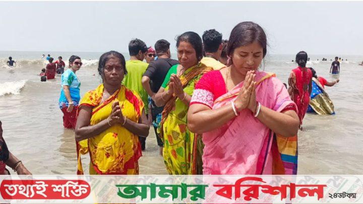 কুয়াকাটায় সনাতন ধর্মাবলম্বীদের সমুদ্রস্নান