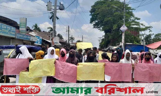 আমতলীতে অবৈধ স্থাপনা অপসারণ দাবিতে কলেজ শিক্ষার্থীদের মানববন্ধন