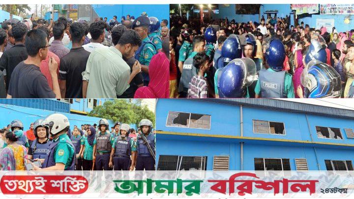 একপর্যায়ে বিক্ষুব্দ শ্রমিকার কারখানায় ইট পাটকেল নিক্ষেপ করলে কারখানার নিরাপত্তার দায়িত্বে থাকা আনসার সদস্যরা শ্রমিকদের ওপর ১০ রাউন্ড গুলিবর্ষণ করেছে। এতে চার শ্রমিক আহত হয়েছেন। পাশাপাশি শ্রমিকদের ছোড়া ইটের আঘাতে কাউনিয়া থানার পুলিশ পরিদর্শক (তদন্ত) মোস্তাফিজুর রহমান এবং পাঁচ আনসার সদস্যসহ ১০ জন আহত হয়েছেন। বরিশাল বিসিকে অবস্থিত কারখানায় এ ঘটনা ঘটেছে। কারখানাটি বিপিএলে ফরচুন বরিশাল টিমের মালিক ও বিসিক শিল্পনগরী ব্যবসায়ী সমিতির সভাপতি মিজানুর রহমানের।