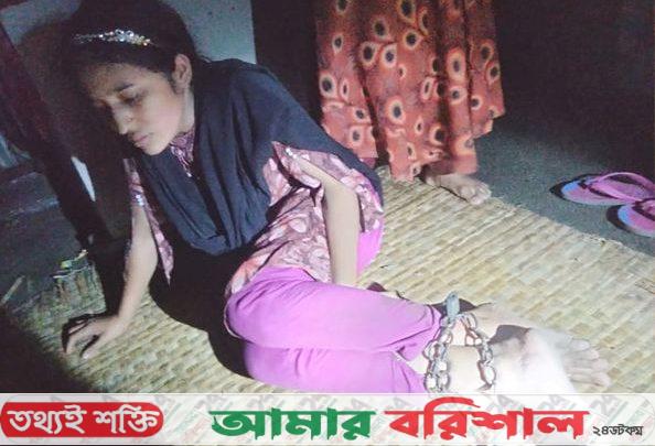 ওই ছাত্রী পিতার বাড়ি চাঁদত্রিশিরায় বেড়াতে আসার পর সে আর স্বামীর বাড়ি যেতে না চাইলে পিতা জামাল হাওলাদার ও মা মারুফা বেগম এবং দুলাভাই আলামিন মিলে লোহার শিকলে হাত-পা বেঁধে শনিবার রাতে ঘরের দরজা বন্ধ করে নির্যাতন চালান।