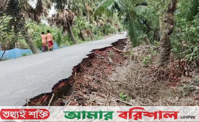 পাথরঘাটায় নবনির্মিত সড়ক হস্তান্তরের আগেই ভেঙে পড়ছে