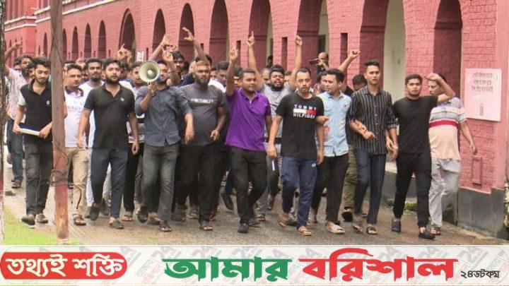 বরিশালে পুলিশ সদস্যদের বিক্ষোভ মিছিল