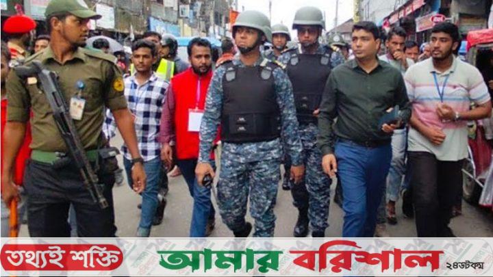 বরগুনায় সাধারণ মানুষের আতঙ্ক কাটাতে নৌবাহিনীর মহড়া