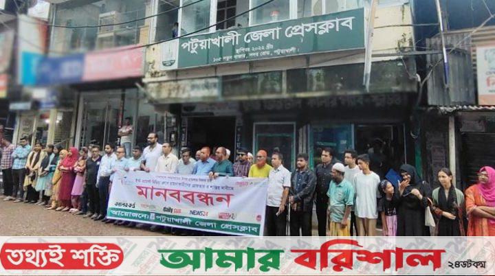 ইস্ট ওয়েস্ট মিডিয়া গ্রুপে হামলার প্রতিবাদে পটুয়াখালীতে মানববন্ধন