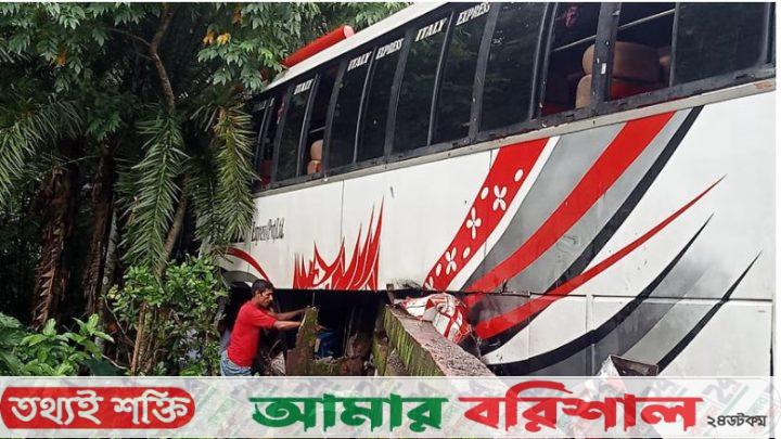 রাজাপুরে নিয়ন্ত্রণ হারিয়ে বাস দুর্ঘটনায় আহত ১০