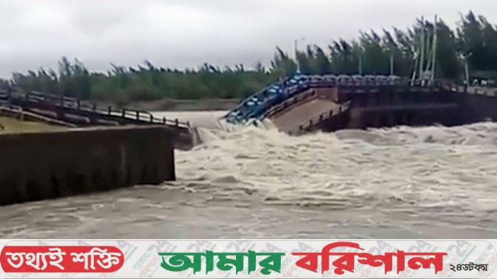বন্যার পানির চাপে ভেঙে গেল মুছাপুর স্লুইসগেট