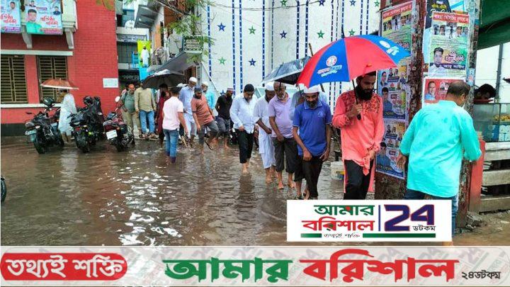 নোংরা আবর্জনা পরিপূর্ণ পানি দিয়ে চলাচল করতে হয়। নগরীর সদর রোডের বায়তুল মোকারম মসজিদে যোহরের নামাজ পড়ে বের হয়ে পানিবন্দি হয়ে পড়েন প্রবীন বাসিন্দা মো. ফিরোজ হাওলাদার। তিনি বলেন, একটু ভারি বৃষ্টি হলেই জুতা হাতে নিয়ে চলাচল করতে হয়।