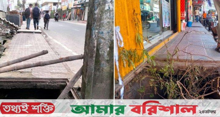 বরিশালে রাতের আঁধারে ম্যানহোলের ঢাকনা চুরি, বাড়ছে দুর্ঘটনা