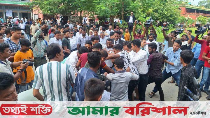 সোমবার (২৩ সেপ্টেম্বর) দুপুরে বরিশাল নগরীর আদালত প্রাঙ্গণে এ ঘটনা ঘটে। প্রত্যক্ষদর্শী সূত্রে জানা যায়, বরিশাল জেলা আওয়ামী লীগের সহ-সভাপতি বরিশাল ৫ আসনের সাবেক এমপি ও পানিসম্পদ প্রতিমন্ত্রী জাহিদ ফারুক শামিমকে রোববার ঢাকা থেকে গ্রেপ্তার করে আইনশৃঙ্খলা বাহিনী।