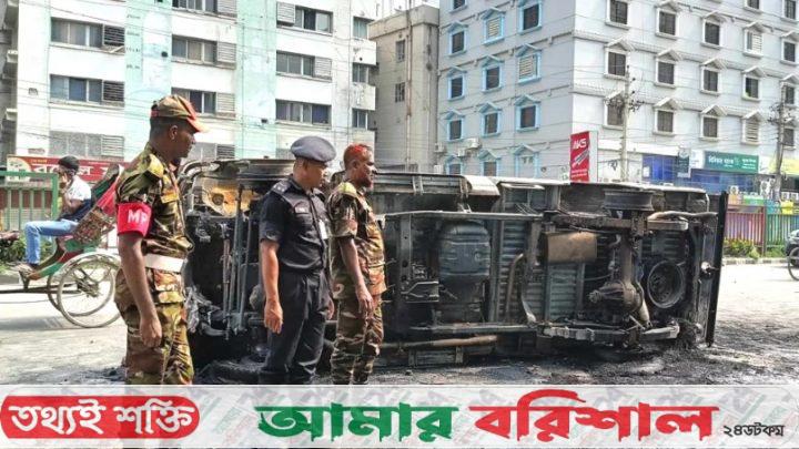 নিজস্ব প্রতিবেদক, বরিশাল: ঢাকার মিরপুর ১৪ নম্বরের কচুক্ষেত এলাকায় গার্মেন্টসকর্মীদের সঙ্গে পুলিশ ও সেনাবাহিনীর সংঘর্ষের ঘটনা ঘটেছে। এতে দুই পোশাক শ্রমিক গুলিবিদ্ধ হয়েছেন। এ সময় সেনাবাহিনীর একটি গাড়ি ও পুলিশের একটি লেগুনায় আগুন দিয়েছেন আন্দোলনকারীরা।