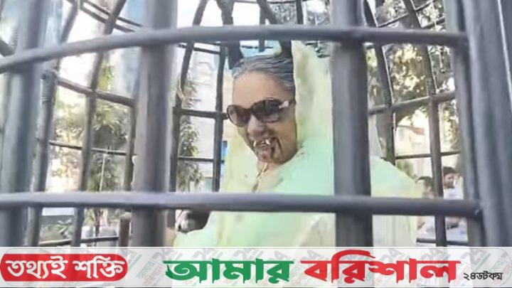 নিজস্ব প্রতিবেদক, বরিশাল: ৭ নভেম্বর জাতীয় বিপ্লব ও সংহতি দিবসে বিএনপির আয়োজিত শোভাযাত্রায় সাবেক প্রধানমন্ত্রী শেখ হাসিনাকে প্রতীকীভাবে খাঁচায় বন্দি করে উপস্থাপন করা হয়েছে।