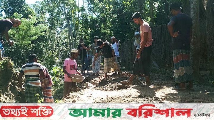 রাজাপুরে স্বেচ্ছাশ্রমে রাস্তা সংস্কার করলো এলাকাবাসী