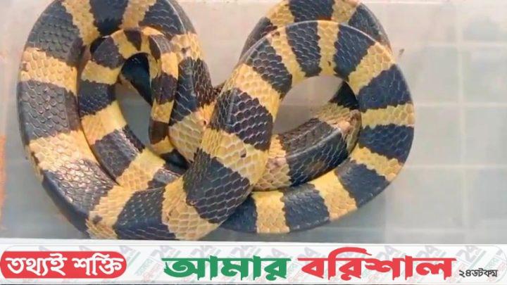 স্থানীয় সূত্রে জানা যায়, কালোর মধ্যে হলুদ ডোরা এ সাপটি ওই কৃষকের জালে আটকা পড়ে। এসময় স্থানীয়রা আতংকিত হয়ে সাপটি মারার চেষ্টা করে। তাৎক্ষনিক খবর পেয়ে এনিমেল লাভারস অফ পটুয়াখালীর সদস্যরা ঘটনাস্থলে পৌছে সাপটি উদ্ধার করে। প্রাথমিক চিকিৎসা শেষে সাপটি সংরক্ষিত বনে অবমুক্ত করা হবে বলে জানান এনিমেল লাভারস অফ পটুয়াখালীর সদস্যরা।