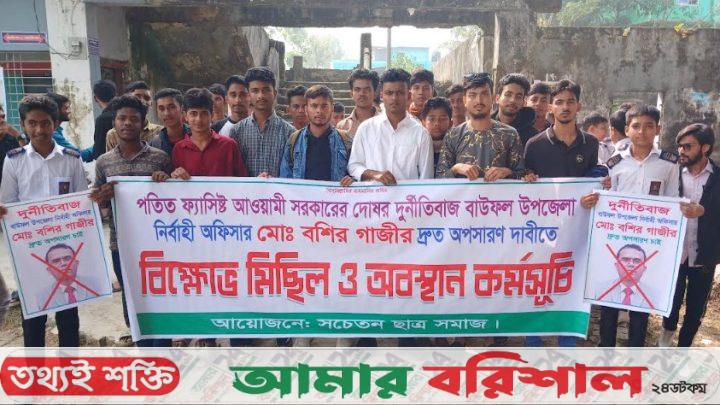 বাউফলে ছাত্র সমাজের বিক্ষোভের মুখে ইউএনও’র অপসারণ