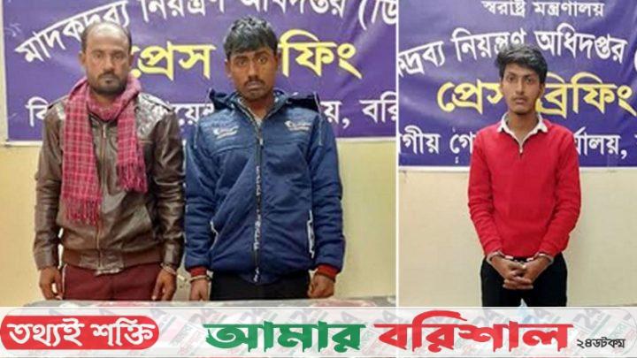 গোয়েন্দা কর্মকর্তা এনায়েত হোসেন আরও বলেন, ‘এরপর আটকদের মাদকদ্রব্য নিয়ন্ত্রণ কার্যালয়ে নিয়ে জিজ্ঞাসাবাদ শেষে বরিশাল মেট্রোপলিটন এয়ারপোর্ট থানায় মামলা দায়ের করা হয়। ওই মামলায় তিন জনকে থানায় সোপর্দ করা হয়।’