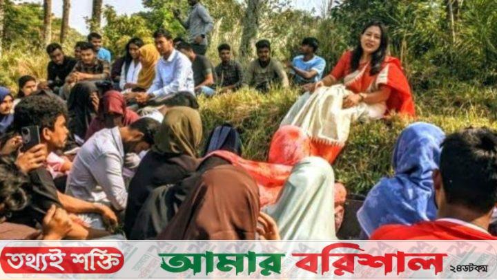 বরিশাল বিশ্ববিদ্যালয়ে শ্রেণিকক্ষ সংকটে তালতলায় শিক্ষার্থীদের ক্লাস