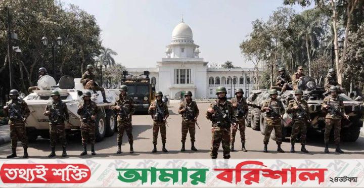 শনিবার (৮ ফেব্রুয়ারি) সকাল থেকে সুপ্রিম কোর্ট প্রাঙ্গণে সেনা সদস্যদের মোতায়েন করেছে বাংলাদেশ সেনাবাহিনী। মূলত হাইকোর্ট এলাকায় ম্যুরাল ভেঙে ফেলা হবে এমন তথ্যের ভিত্তিতে নিরাপত্তা জোরদার করা হয়েছে।
