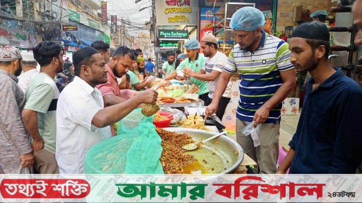 বরিশালের বিভিন্ন প্রান্ত থেকে আসা মানুষের ভিড়ে জমে উঠে নগরীর বগুরা রোড, চকবাজা, র্গীজ্জা মহল্লা,পুলিশ লাইনন্স, ফকির বাড়ী রোড সহ কয়েকটি পয়েন্টে। এবার প্রথম রমজানেই জমে উঠেছে বরিশালের ইফতার বাজার।