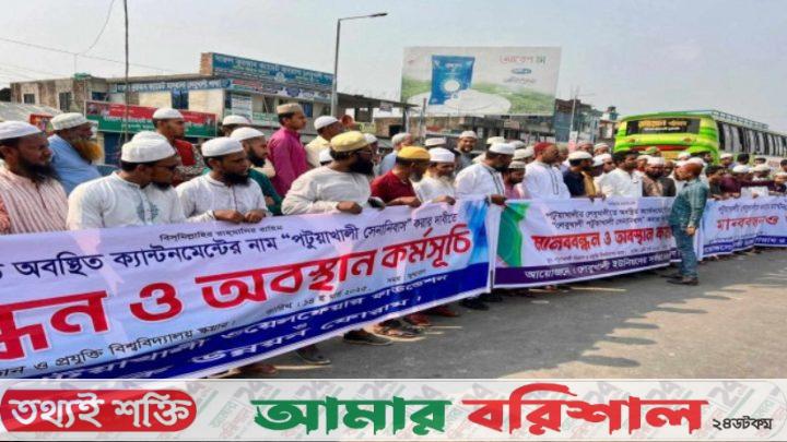 শেখ হাসিনা সেনানিবাসের নাম ‘পটুয়াখালী সেনানিবাস‘ করার দাবীতে মানববন্ধন