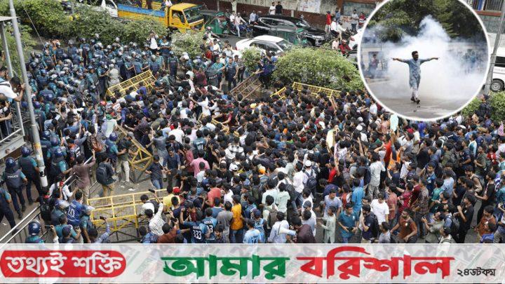 শিক্ষার্থীদের ‘লংমার্চ টু যমুনা’য় পুলিশের বাধা, টিয়ারশেল-লাঠিচার্জ