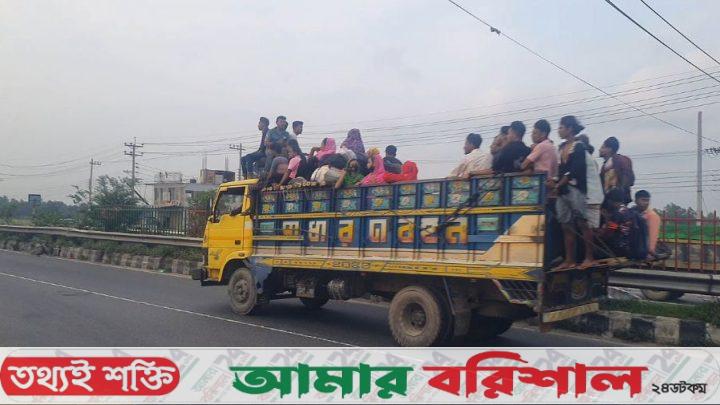 বাসে অতিরিক্ত ভাড়া, খোলা ট্রাক-পিকআপে বাড়ি ফিরছে মানুষ