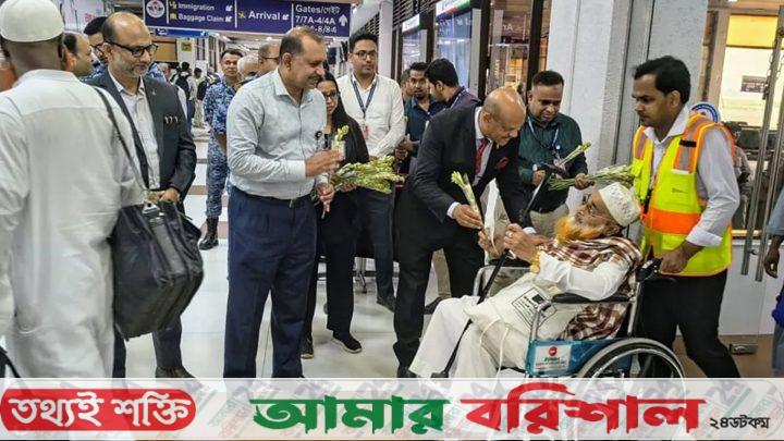 বিমানবন্দরের বোর্ডিং ব্রিজে হাজিদের স্বাগত জানান বেসামরিক বিমান চলাচল কর্তৃপক্ষের (বেবিচক) চেয়ারম্যান এয়ার ভাইস মার্শাল মো. মঞ্জুর কবীর ভূঁইয়া। এ সময় তিনি হাজিদের হাতে ফুল তুলে দেন। বেবিচক জানিয়েছে, মঙ্গলবার আরও ৭টি ফিরতি ফ্লাইটে আড়াই হাজারের বেশি হাজি দেশে ফিরবেন। আগামী ১১ জুলাই পর্যন্ত চলবে ফিরতি হজ ফ্লাইটের এই কার্যক্রম।