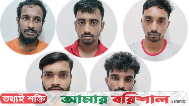 আটককৃতরা হলেন নগরীর ১ নং ওয়ার্ড বিসিক পোল এলাকার মন্টু হাওলাদারের ছেলে সাকিব হাওলাদার, কামরুল গাজীর ছেলে সজল গাজী, ৬ নং ওয়ার্ডের বেলতলা খেয়াঘাট এলাকার মৃতঃ মাজেদ হাওলাদারের ছেলে সোহাগ হাওলাদার, চরবাড়িয়া ইউনিয়নের ৪নং ওয়ার্ডের সাপানিয়া এলাকার বাসিন্দা ছত্তার হাওলাদারের ছেলে তপন হাওলাদার, ৩ নং ওয়ার্ডের কাগাশুরা গ্রামের আশরাফ আলীর ছেলে মোঃ সাকিব দিদার।