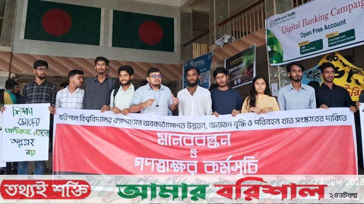 এসময় বক্তারা বলেন, কীর্তনখোলা নদীর তীরে বরিশাল বিশ্ববিদ্যালয় প্রতিষ্ঠার ১৪ বছরেও শ্রেণিকক্ষ সংকট কাটেনি।
