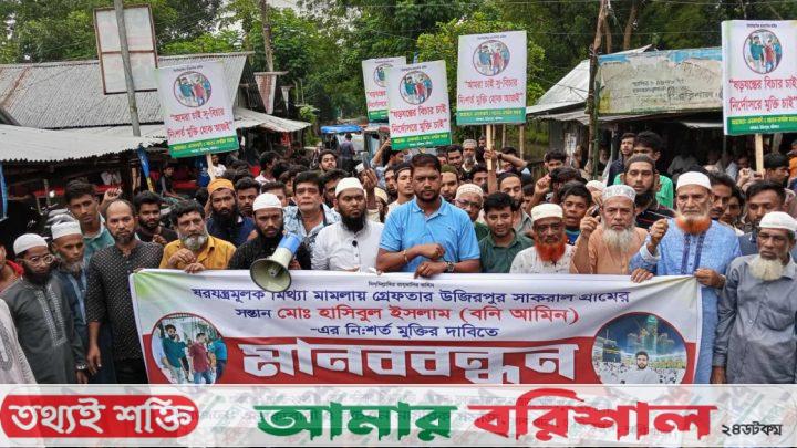 উজিরপুরে ষড়যন্ত্রমুলক মিথ্যা মামলার শিকার বনি আমিনের নিঃশর্ত মুক্তির দাবিতে মানববন্ধন ও বিক্ষোভ মিছিল