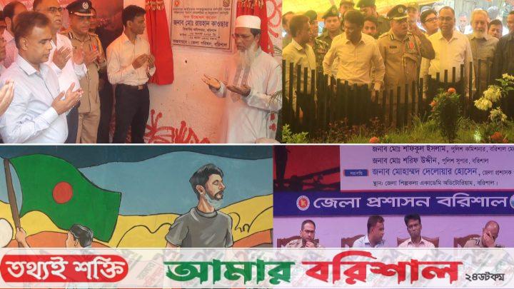 শিল্পীর তুলির আঁচড়ে ফুটে ওঠে অগ্নিঝরা জুলাই গণঅভ্যুত্থান। পরে সকাল সাড়ে ১০টায় শিল্পকলা একাডেমি মিলনায়তনে হয় জেলা প্রশাসনের আয়োজনে “জুলাই পুনর্জাগরন অনুষ্ঠানমালা ও জুলাই শহিদ পরিবার ও জুলাই যোদ্ধাদের সংবর্ধনা, আলোচনা সভা এবং জুলাই নিয়ে নির্মিত চলচ্চিত্র প্রদর্শনী ও সংবর্ধনা প্রদান করা হয়। ৩০ শহীদ পরিবার ও জুলাই যোদ্ধা ৩৮৯ জন সহ মোট-৪১৯ জনকে সংবর্ধনা প্রদান করেন। এছাড়াও আজ সকাল সাড়ে ১০টায় ব্রজমোহন (বিএম) কলেজে জুলাই স্মৃতি সংরক্ষণ ও জাদুঘরের উদ্বোধন করা হয়।
