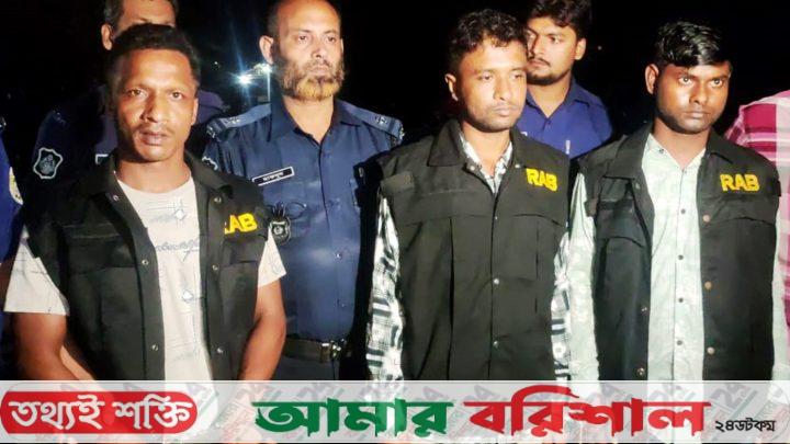 ওসি আরও জানিয়েছেন, গ্রেপ্তারকৃতরা হলো-আগৈলঝাড়া উপজেলার বাগধা ইউনিয়নের নাঘিরপাড় গ্রামের মৃত আব্দুল মাজেদ মোল্লার ছেলে ও বাগধা ইউনিয়ন শ্রমিক দলের সাংগঠনিক সম্পাদক রাসেল মোল্লা (৪০), একই উপজেলার উত্তর চাঁদত্রিশিরা গ্রামের দুলাল মোল্লার ছেলে রমজান মোল্লা (২৮) এবং বাকাল ইউনিয়নের পূর্ব পয়সা গ্রামের নগেন হালদারের ছেলে নরত্তোম হালদার (৩৪)।