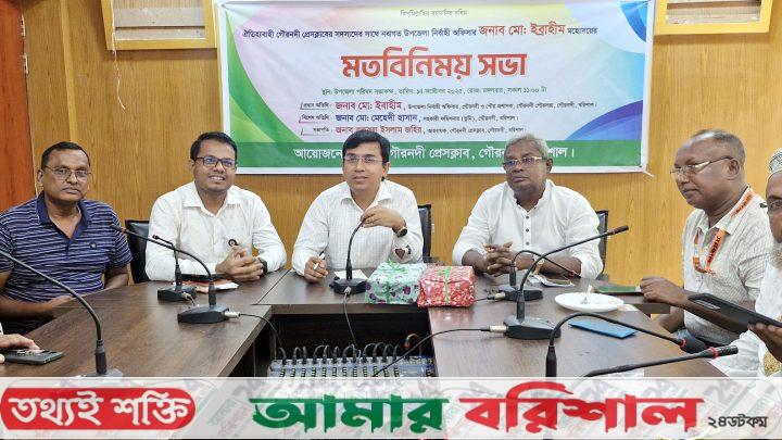 গৌরনদী প্রেসক্লাবের আয়োজনে মঙ্গলবার সকালে উপজেলা পরিষদের সভাকক্ষে অনুষ্ঠিত মতবিনিময় সভায় প্রধান অতিথি ছিলেন উপজেলা নির্বাহী অফিসার ও পৌর প্রশাসক মো. ইব্রাহীম। বিশেষ অতিথি ছিলেন সহকারী কমিশনার (ভূমি) মো. মেহেদী হাসান।