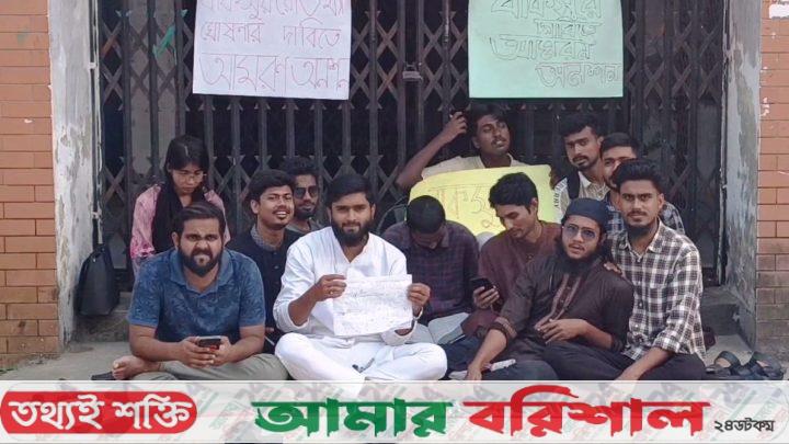 বরিশাল ॥ বরিশাল সরকারি বি,এম, কলেজ ছাত্র সংসদ (বাকসু) নির্বাচনের দাবিতে শিক্ষার্থীরা প্রশাসনিক ভবনের সামনে আমরন অনশনে বসেন।