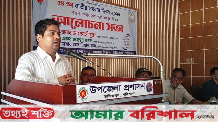 ১ নভেম্বর শনিবার বেলা ১১ টায় উপজেলা পরিষদ হলরুমে আলোচনা সভায় উজিরপুর উপজেলা সমবায় কর্মকর্তা রিয়াদ খানের সভাপতিত্বে ও সহকারী পরিদর্শক মাইনুল হোসেন খানের সঞ্চালনায় প্রধান অতিথির বক্তৃতা করেন ছিলেন উপজেলা নির্বাহী কর্মকর্তা মোঃ আলী সুজা।