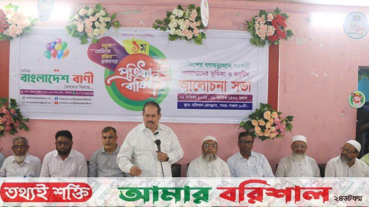 শনিবার (১ নভেম্বর) সকাল সাড়ে ১০টায় বরিশাল প্রেসক্লাব মিলনায়তনে বাংলাদেশ বাণী পত্রিকার বর্ষপূর্তি উপলক্ষে ‘চব্বিশের গণঅভ্যুত্থান পরবর্তী গণমাধ্যমের ভূমিকা ও করণীয়’ শীর্ষক আলোচনা সভায় প্রধান অতিথির বক্তব্য এসব কথা বলেন।