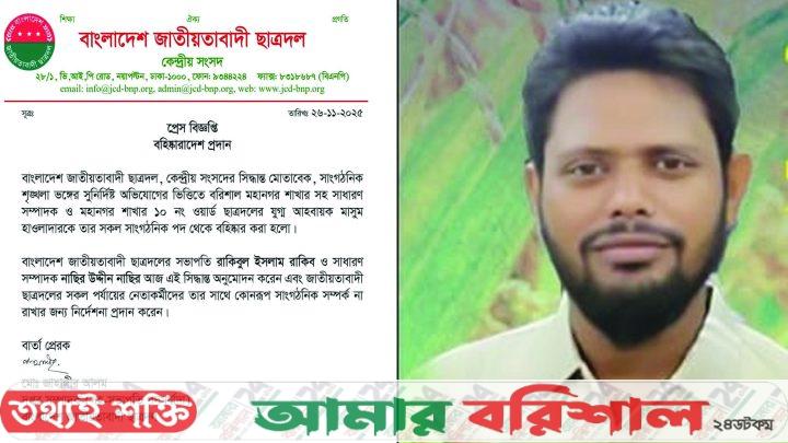 এর আগে একাধিক মামলার আসামি বরিশাল মহানগর ছাত্রদলের যুগ্ম আহ্বায়ক মাসুমকে ২১ নভেম্বর গ্রেপ্তার করতে গেলে পুলিশের হাতে কামড় দিয়ে পালিয়ে যান তিনি। এ সময় মাসুমের সহযোগীদের হামলায় এসআইসহ তিন পুলিশ সদস্য আহত হন। পালিয়ে যাওয়ার তিন দিন পর মাসুমকে গ্রেপ্তার করে জেল হাজতে প্রেরণ করা হয়। এরপরই শুক্রবার তার বহিষ্কার আদেশ পৌঁছায় বরিশালে।